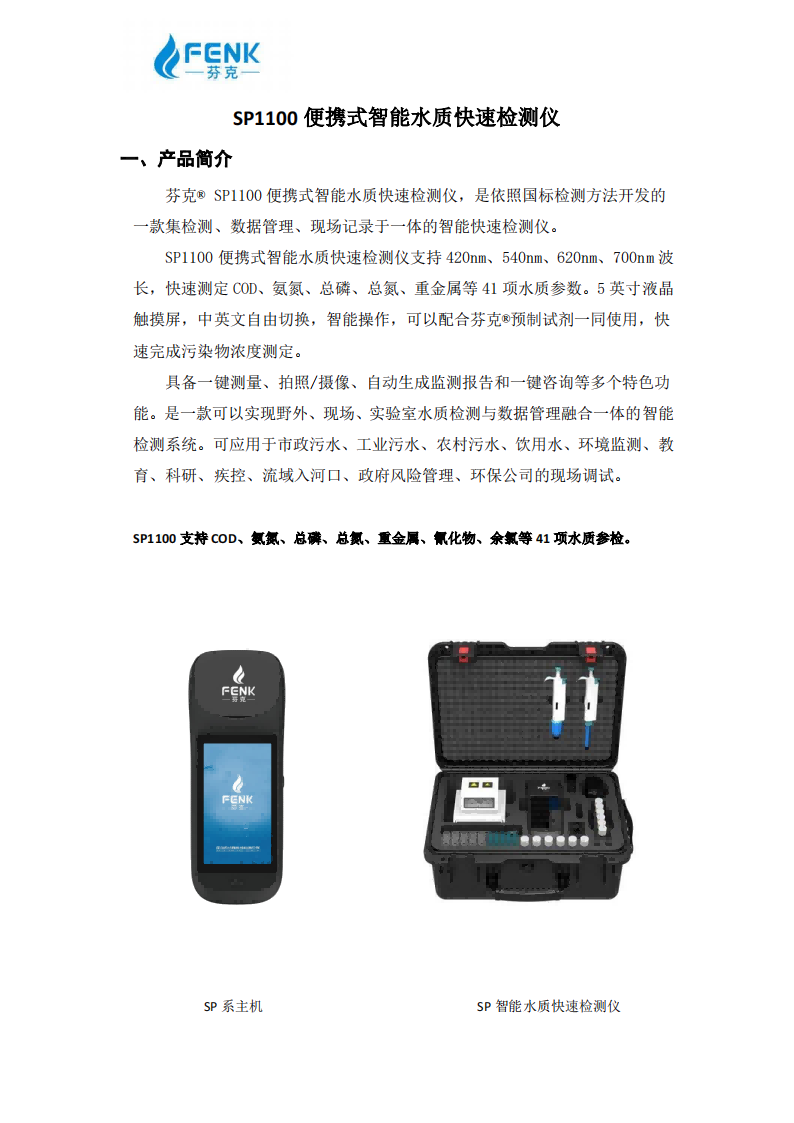 產(chǎn)品標(biāo)題:SP-1100 便攜式智能水質(zhì)快速檢測儀